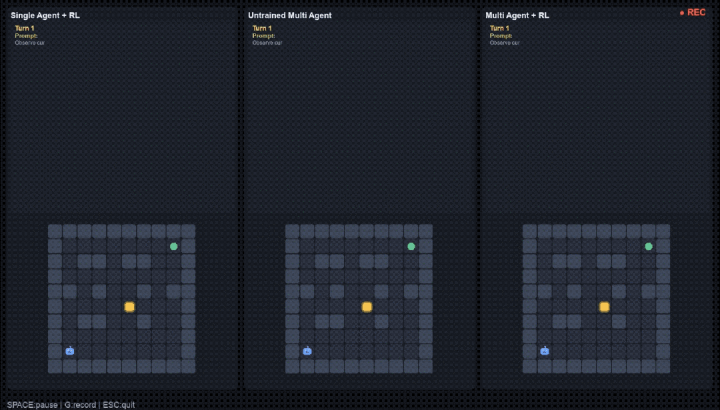 为训练大模型智能体,Group Relative Policy Optimization (GRPO) 已被验证为通用的有效强化学习算法。然而,当前所有针对LLM的强化学习训练框架,包括GRPO算法本身,都局限于单智能体训练的范畴。多智能体间的协作优化,即“群体强化”的学习机制,仍然是一个亟待填补的空白。